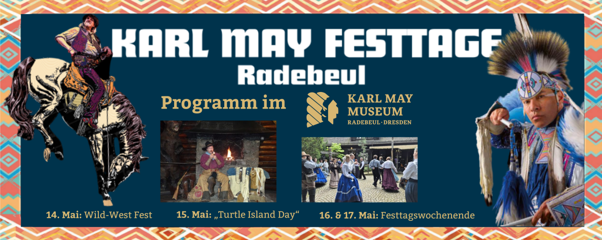 Entdecken Sie den Schatz von Radebeul und tauchen Sie ein in die Welten eines der erfolgreichsten deutschen Schriftsteller aller Zeiten! In unseren historischen Gebäuden – der Villa „Shatterhand“ und der „Villa Bärenfett“ – erkunden Sie Karl Mays bewegtes Leben und lernen die Vielfalt der indigenen Kulturen Nordamerikas und ihre Geschichte kennen. Unsere Kunstausstellung in der „Turtle Island Gallery“ zeigt, was indigene Menschen in den USA und Kanada heute bewegt.