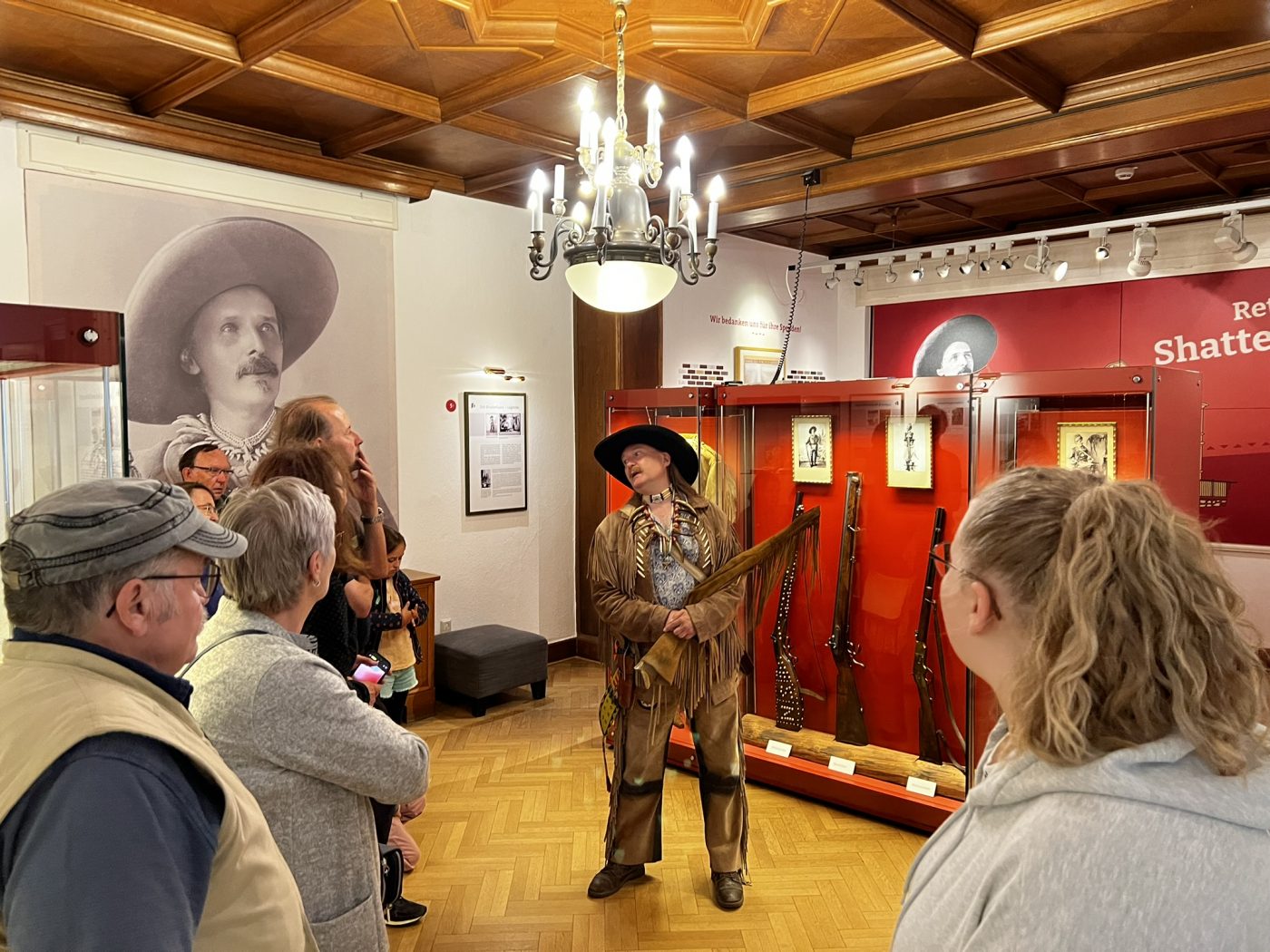 Er ist es wirklich! Karl May höchstpersönlich empfängt seine kleinen und großen Gäste in der Kluft von Old Shatterhand von Februar bis Oktober jedes Wochenende sowie dienstags und donnerstags in den sächsischen Schulferien und nimmt sie mit auf eine abenteuerliche Führung der besonderen Art durch sein einzigartiges Museum.