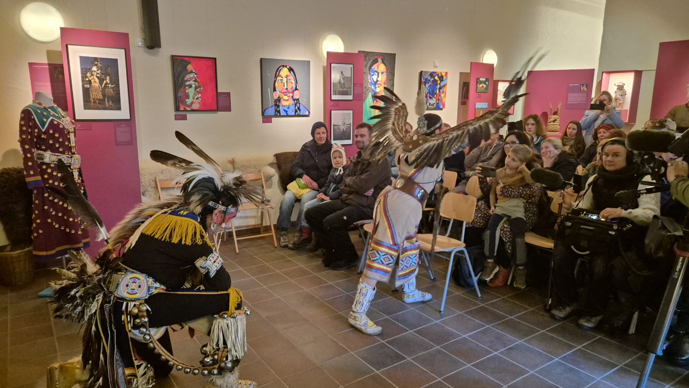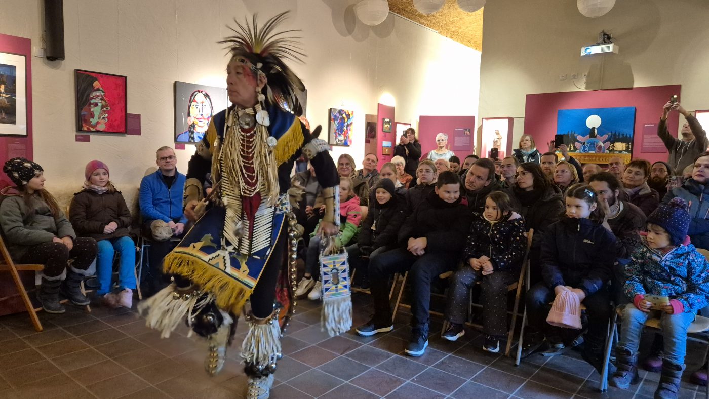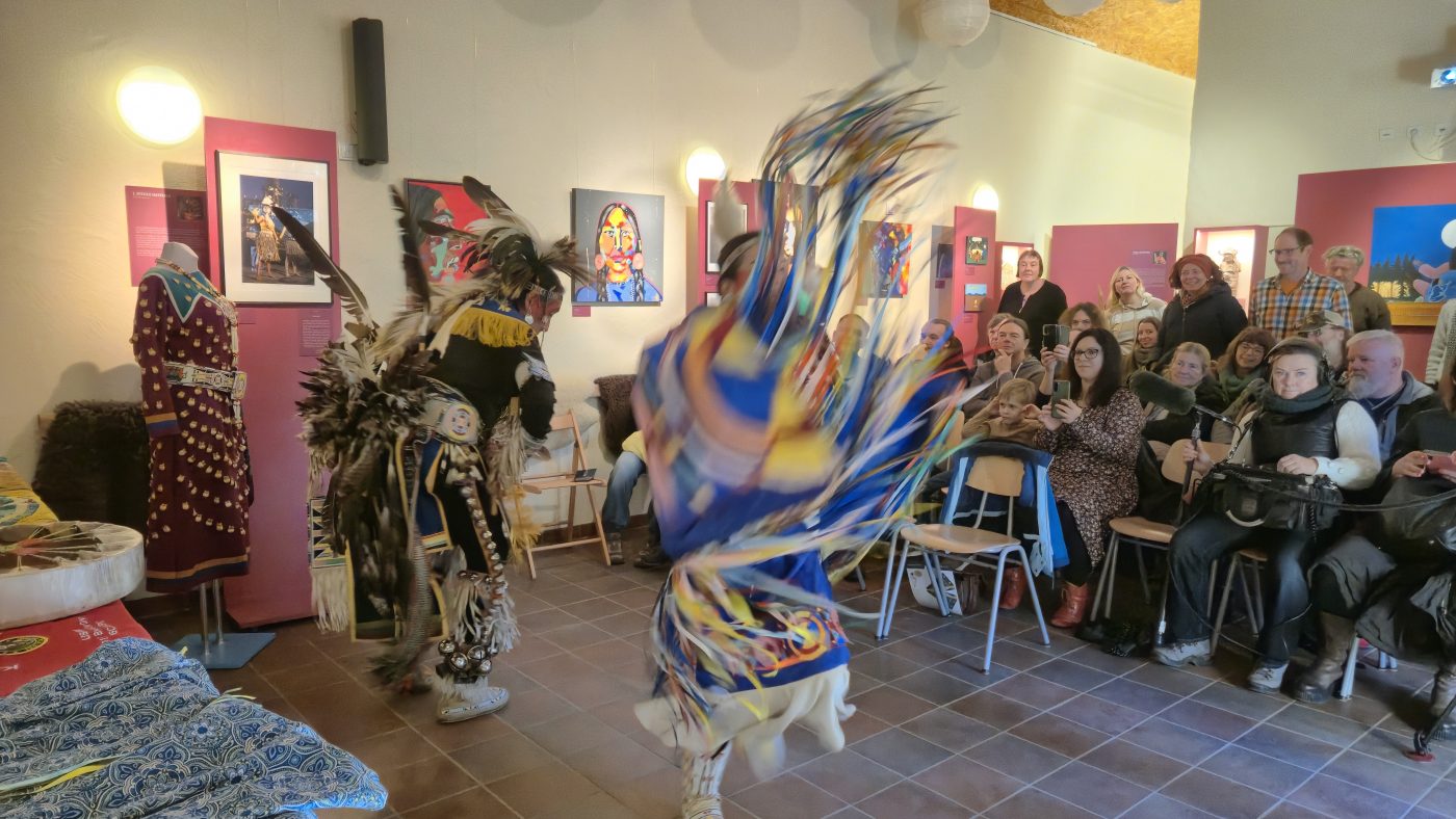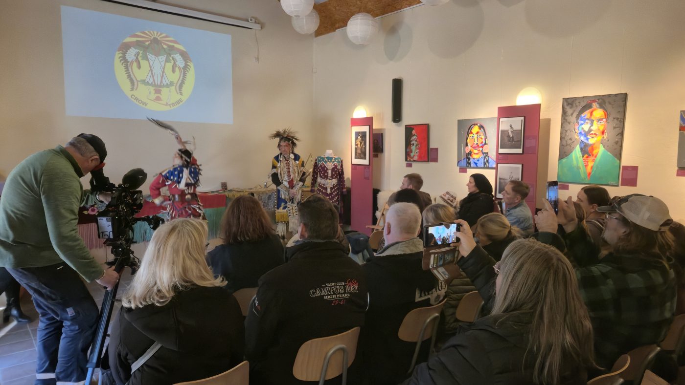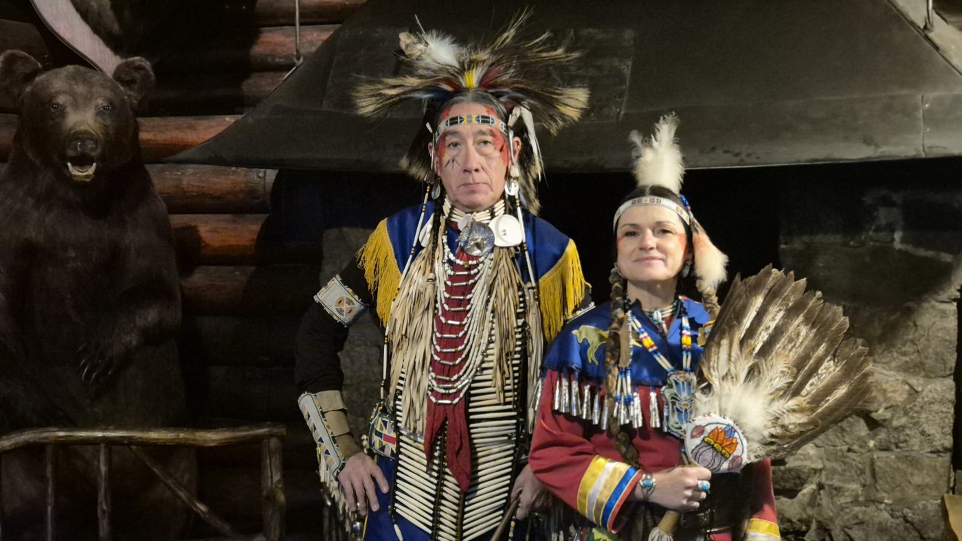 Highlight des ersten „Indigenen Novembers“ im Karl-May-Museum waren Kendall & Maria Old Elk (Apsaalooke – Crow). Ihrem Bann konnten sich selbst ein sonst ja eher zurückhaltendes deutsches Publikum nicht entziehen. Das charismatische Paar holte die Zuschauer von ihren Stühlen und bewegte sie zum ausgelassenen Tanzen. Auch ein paar Worte in der universellen Zeichensprache der Indianer lehrte er das Publikum. Doch meist lauschte das Publikum andächtig den weisen Worten Kendall Old Elks, der wie kein anderer versteht, seine Botschaft eindringlich aber sanft zu vermitteln.