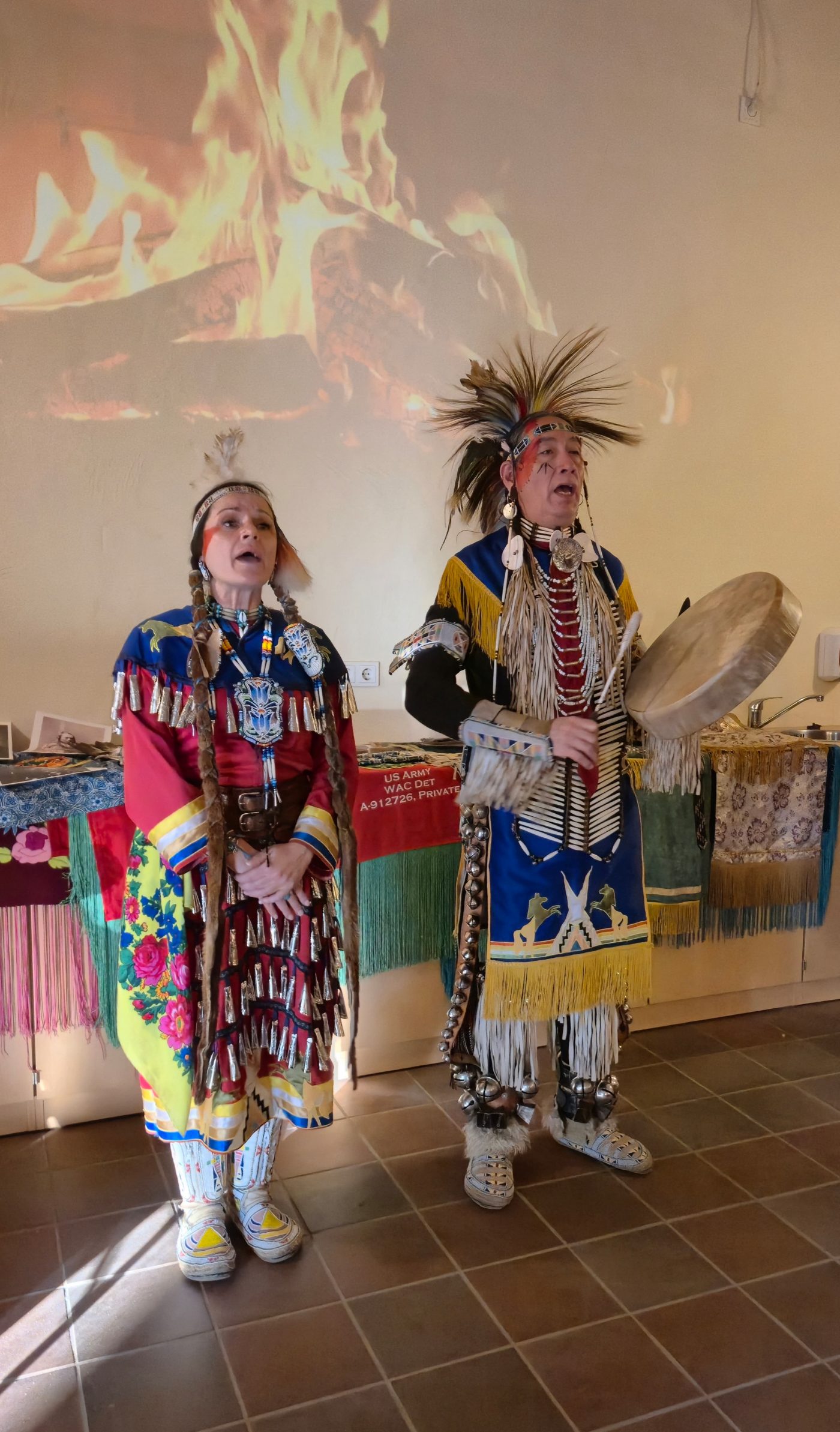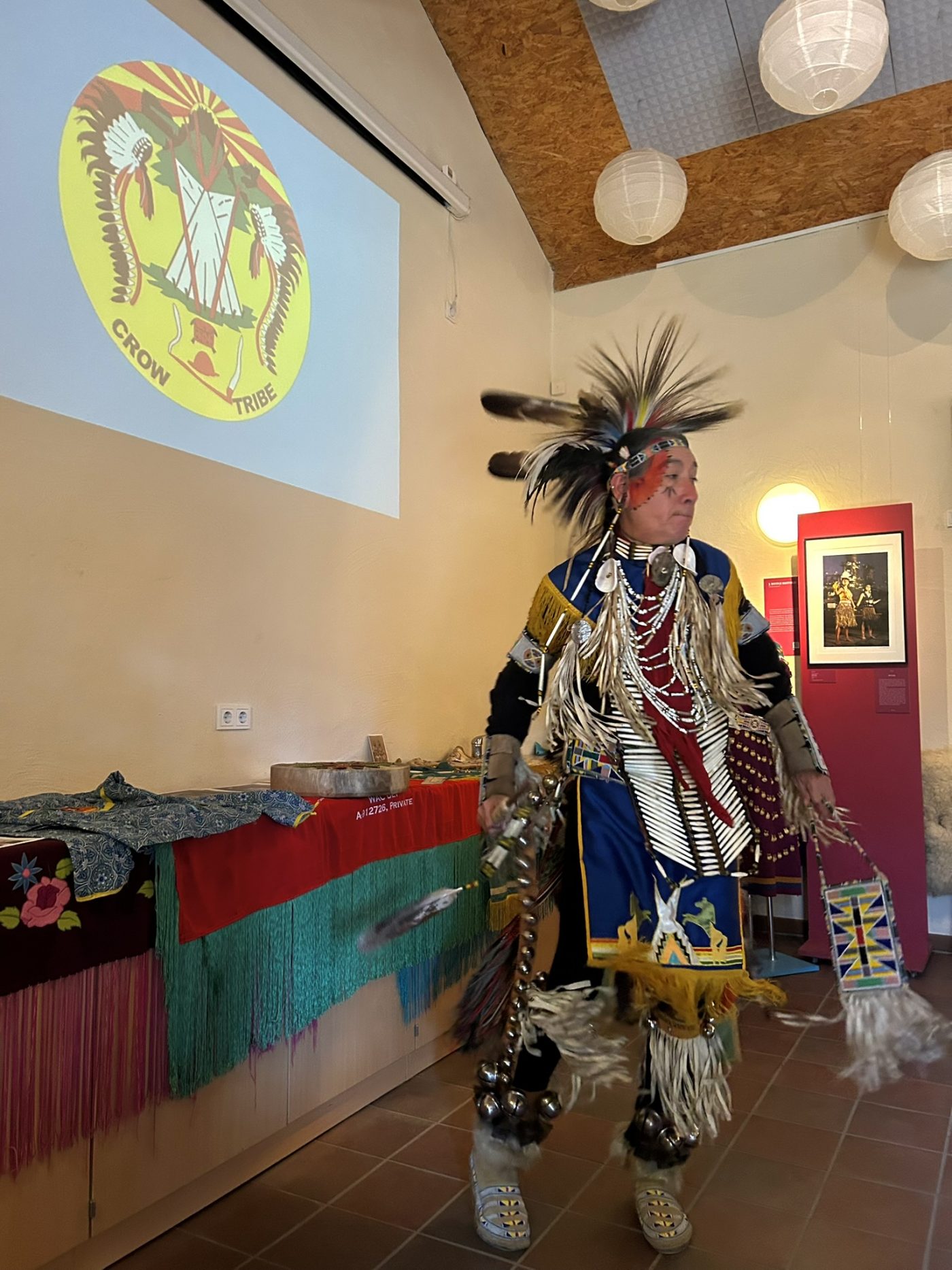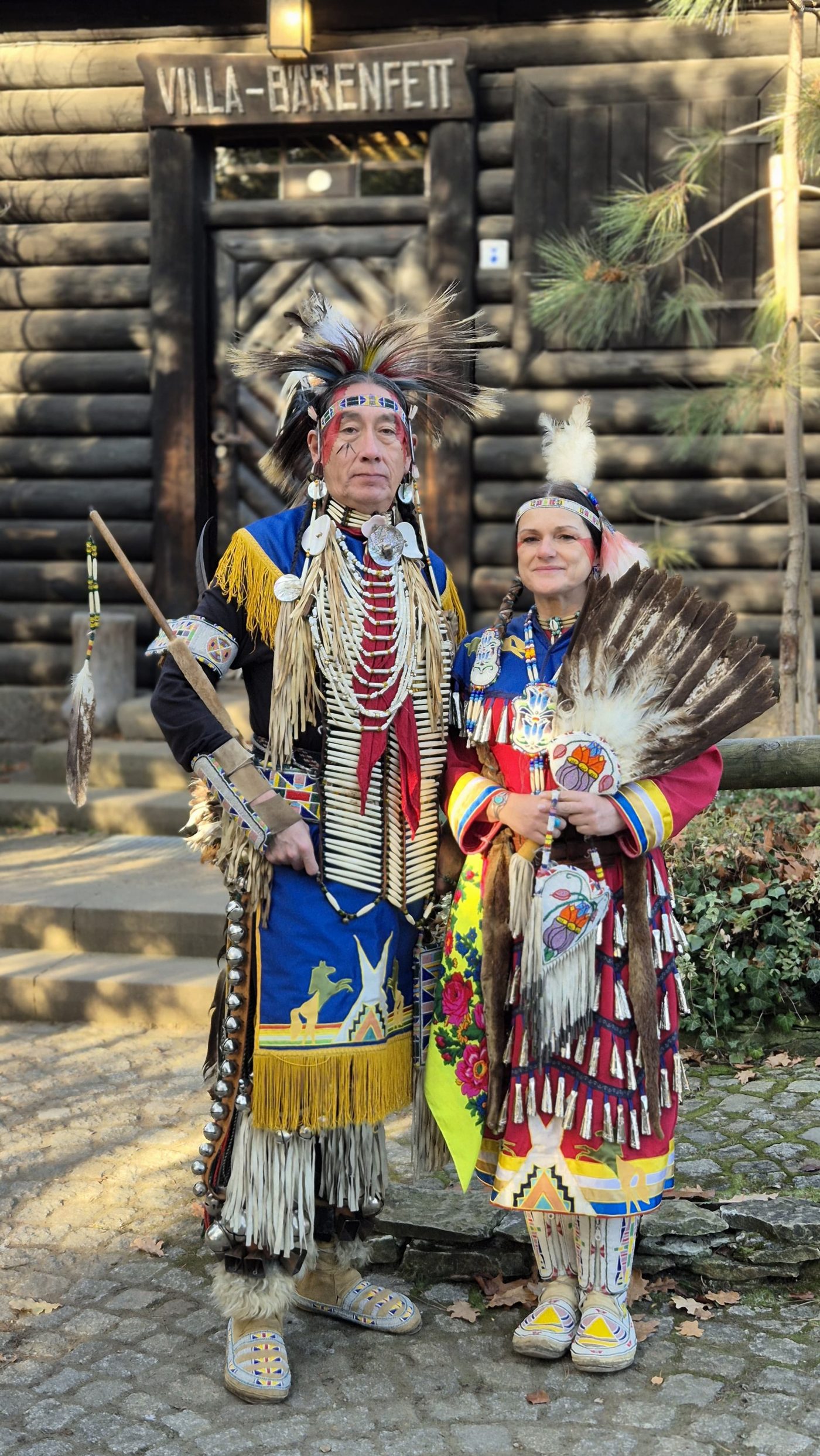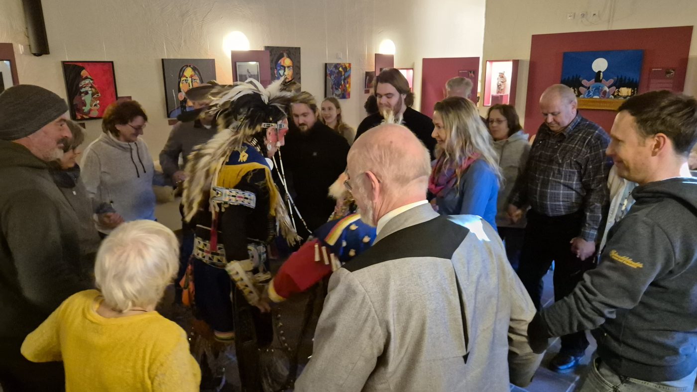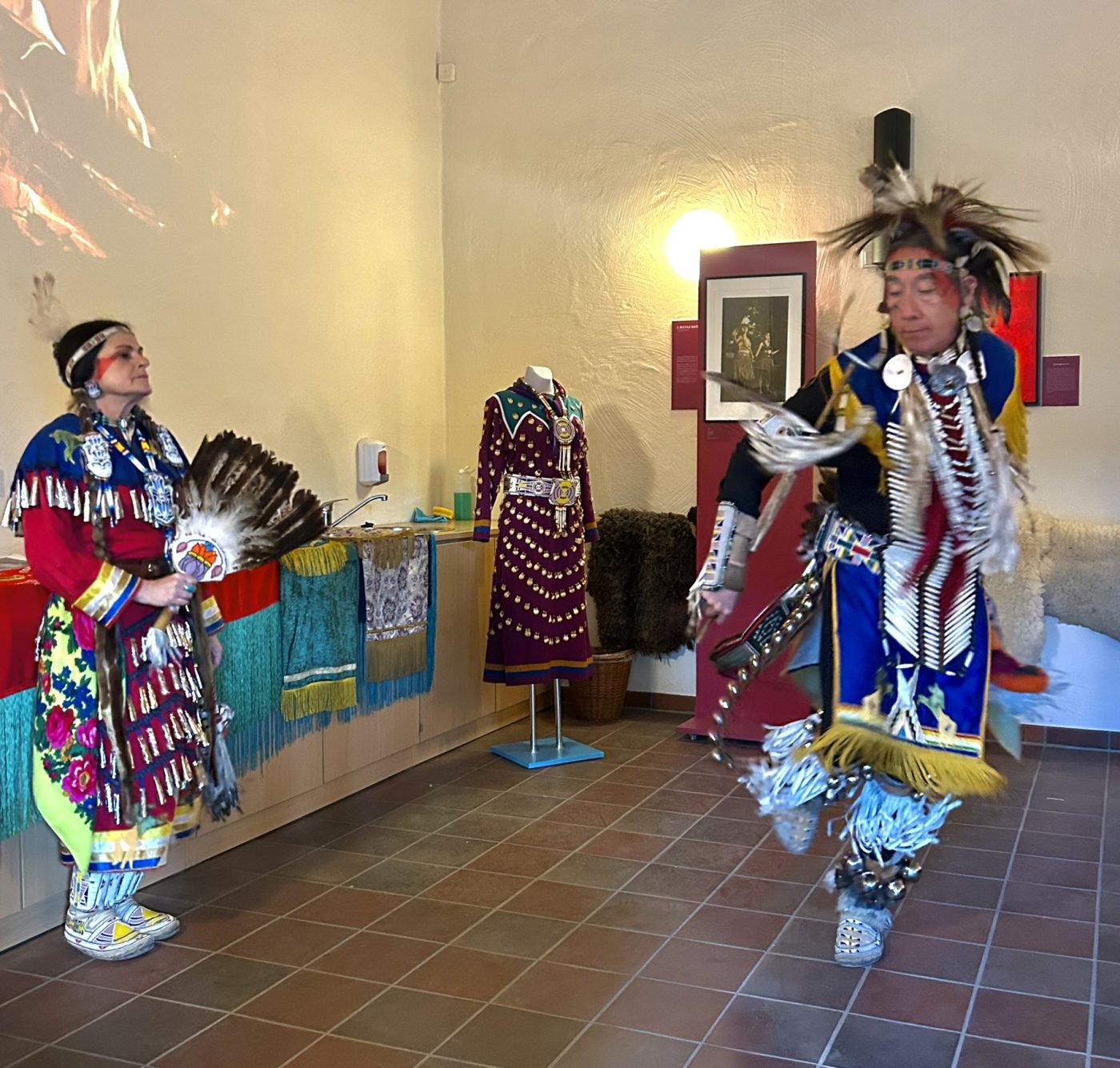 Highlight des ersten „Indigenen Novembers“ im Karl-May-Museum waren Kendall & Maria Old Elk (Apsaalooke – Crow). Ihrem Bann konnten sich selbst ein sonst ja eher zurückhaltendes deutsches Publikum nicht entziehen. Das charismatische Paar holte die Zuschauer von ihren Stühlen und bewegte sie zum ausgelassenen Tanzen. Auch ein paar Worte in der universellen Zeichensprache der Indianer lehrte er das Publikum. Doch meist lauschte das Publikum andächtig den weisen Worten Kendall Old Elks, der wie kein anderer versteht, seine Botschaft eindringlich aber sanft zu vermitteln.