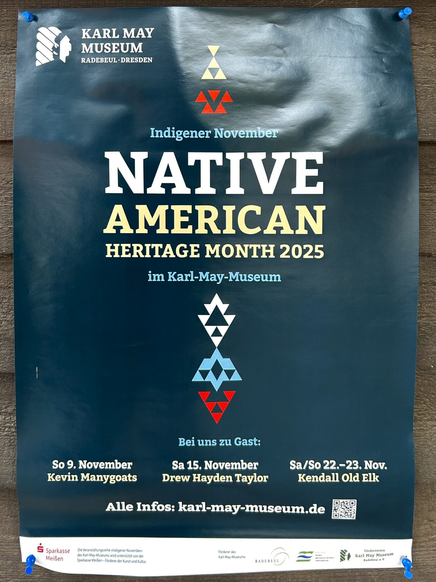 Die Veranstaltungsreihe „Indigener November“ des Karl-May-Museums wird unterstützt von der „Sparkasse Meißen – Förderer der Kunst und Kultur“ und vom Kulturraum Meißen – Sächsische Schweiz – Osterzgebirge.