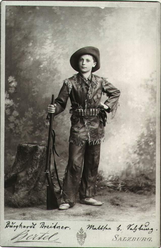 Karl May wird heute meist als Auslöser der deutschen Indianerbegeisterung betrachtet, obwohl er eigentlich nur auf dieser aufgebaut hat. Die falsche Wahrnehmung hängt nicht nur mit der großen Popularität der Bücher und der Verfilmungen aus den 1960er Jahren zusammen, sondern ist vor allem eng mit der Vermarktung des Autors verbunden, die bekanntermaßen davon ausging, er wäre selbst Old Shatterhand gewesen. Zum Beweis ließ May nicht nur schussunfähige Modelle der berühmten Gewehre anfertigen, sondern posierte auch für Kostümfotos in seiner Rolle. Wie bei seinen Erzählungen basieren auch diese auf Vorbildern und Vorwissen der Betrachter. Seine Kleidung und Gestik ist deutlich angelehnt an die Fotografien von bekannten Westmännern der Zeit, insbesondere des berühmten William F. Cody alias Buffalo Bill. Zur gleichen Zeit forderte May seine Fans auf, ihm für sein Leseralbum Fotos zu schicken. Einige dieser eingesandten Bilder sind wiederum stark an die des Autors angelehnt, was deren große Wirkung zeigt.
