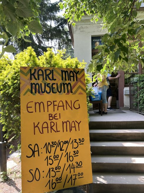 Dr. Karl May persönlich empfängt die Besucher im Arbeitszimmer seines altehrwürdigen Wohnhauses Villa „Shatterhand“ und liest aus seinen berühmten Abenteuerbänden vor.